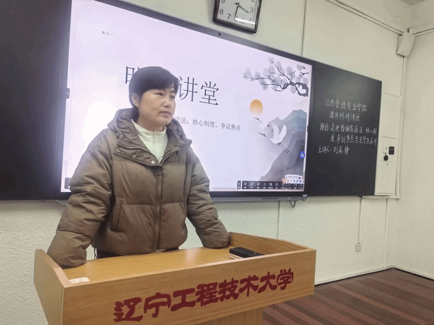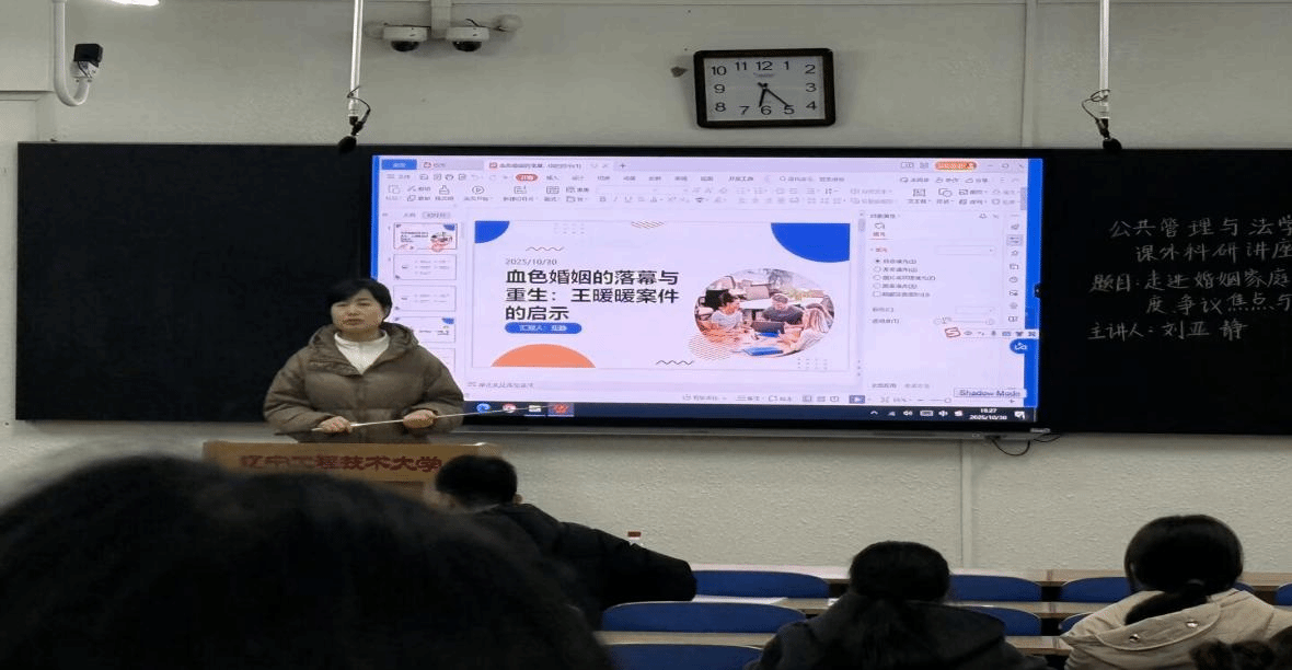 为帮助我校法学生深化对婚姻家庭法的理解,提升法律实务应用能力,10月30日公共管理与法学院团委在博雅楼202举办了以“走进婚姻家庭法:核心制度、争议焦点与法学生应对”为主题的专题讲座。本次讲座特邀法学专业资深教师刘亚静老师主讲,全校百余名法学专业学生到场聆听,现场学习氛围浓厚。