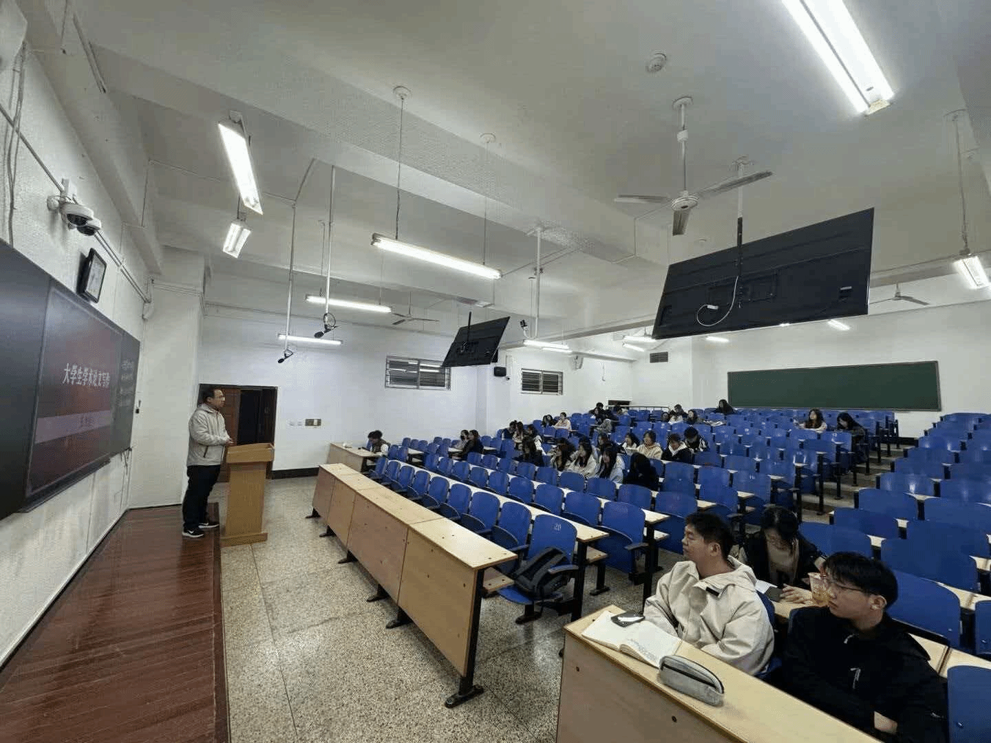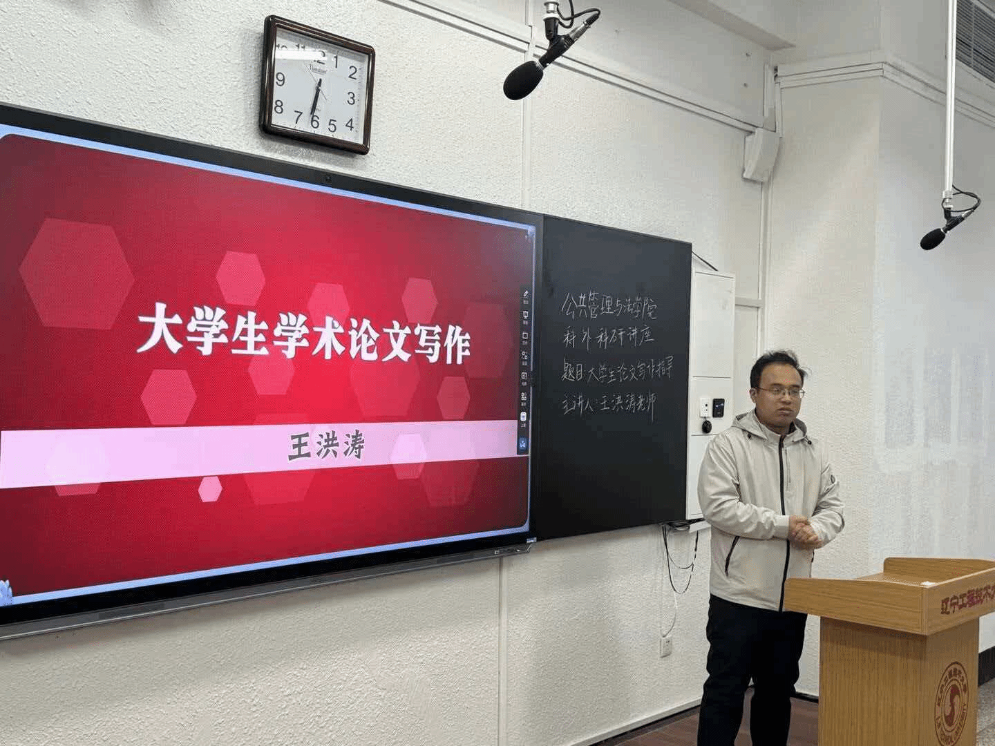 为加强学生了解学科最新动态与未来方向。,10月13日晚上,公共管理与法学院于博雅楼举办“公共管理学科前沿与发展趋势。”主题课外科研讲座。学院王洪涛老师担任主讲,财务管理、行政管理、法学专业百余名学生齐聚一堂,共享这场学术盛宴。